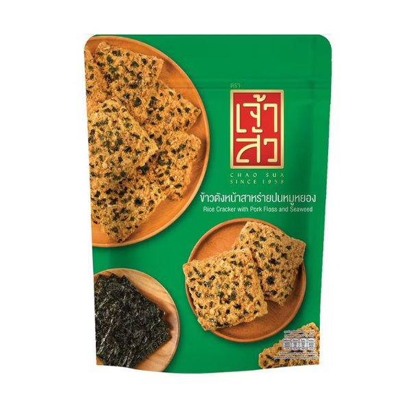 ข้าวตังกรอบหอมมัน ทาด้วยสาหร่ายและโรยหน้าหมูหยองรสกลมกล่อม เคี้ยวเพลิน อร่อยครบรสในคำเดียว ผลิตจากข้าวคุณภาพดี ทอดจนกรอบหอม เหมาะสำหรับเป็นของว่างหรือของฝากแบบไทย ๆ พร้อมทานได้ทันทีในทุกโอกาส