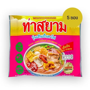 วุ้นเส้นเย็นตาโฟจาก "ท่าสยาม" รสชาติเข้มข้น เส้นเหนียวนุ่ม พร้อมซองปรุงรสในตัว ให้คุณทำเมนูเย็นตาโฟได้ง่าย ๆ ที่บ้าน ขนาด 88 กรัมต่อซอง บรรจุ 5 ซองใน 1 แพ็ค เหมาะสำหรับมื้ออร่อยในครอบครัวที่สะดวกและรวดเร็ว