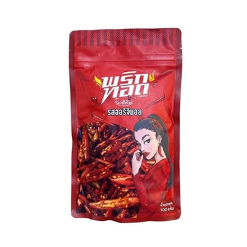 แม่อิพิม พริกทอด ออริจินอล ขนาด 100 กรัม พริกทอดรสชาติเผ็ดร้อน กลมกล่อม ใช้เพิ่มรสชาติให้กับอาหารอีสานเมนูต่าง ๆ เช่น ลาบ ส้มตำ หรือเมนูข้าว เพิ่มความเผ็ดร้อนและหอมในทุกคำ